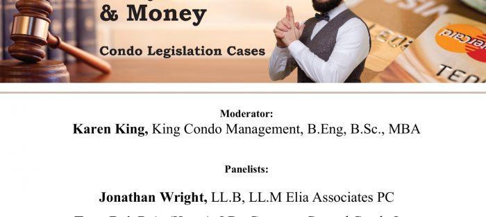 Karen King, owner of King Condo Management Inc, is excited to be moderating an upcoming webinar to help managers, condo owners and Board members of new condos understand the legal and financial implications of recent court cases.